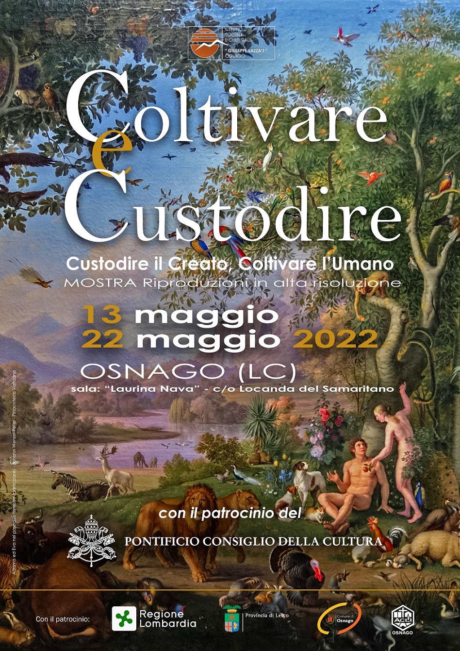 La mostra dal titolo “Coltivare e Custodire, Custodire il Creato, Coltivare l’Umano” sarà allestita nella “Sala Laurina Nava” presso la “Locanda del Samaritano”, dal 13 al 22 maggio 2022. Le opere scelte saranno riprodotte in alta definizione da file forniti con i rispettivi diritti, dai musei. In alternativa, nel caso persistono le restrizioni sanitarie, si opterà anche questa volta per l’allestimento in modalità virtuale online.